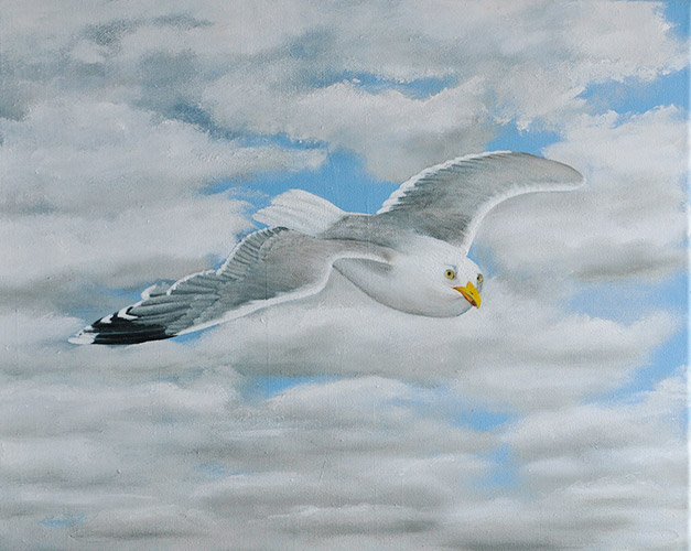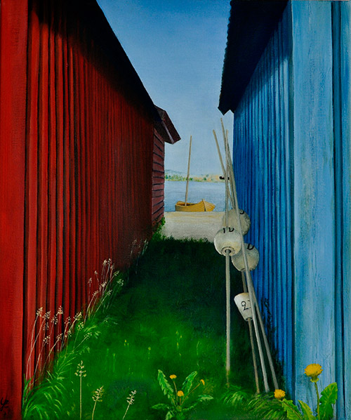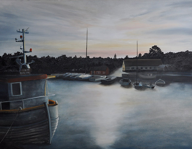 Genom att använda oljefärg har jag möjlighet att ”känna” mig fram i målningen. Färgen torkar inte så fort och tillåter en hel del ändringar. Oljan i sig känns mycket levande, det är alltid spännande att kunna experimentera sig fram till det färdiga resultatet.