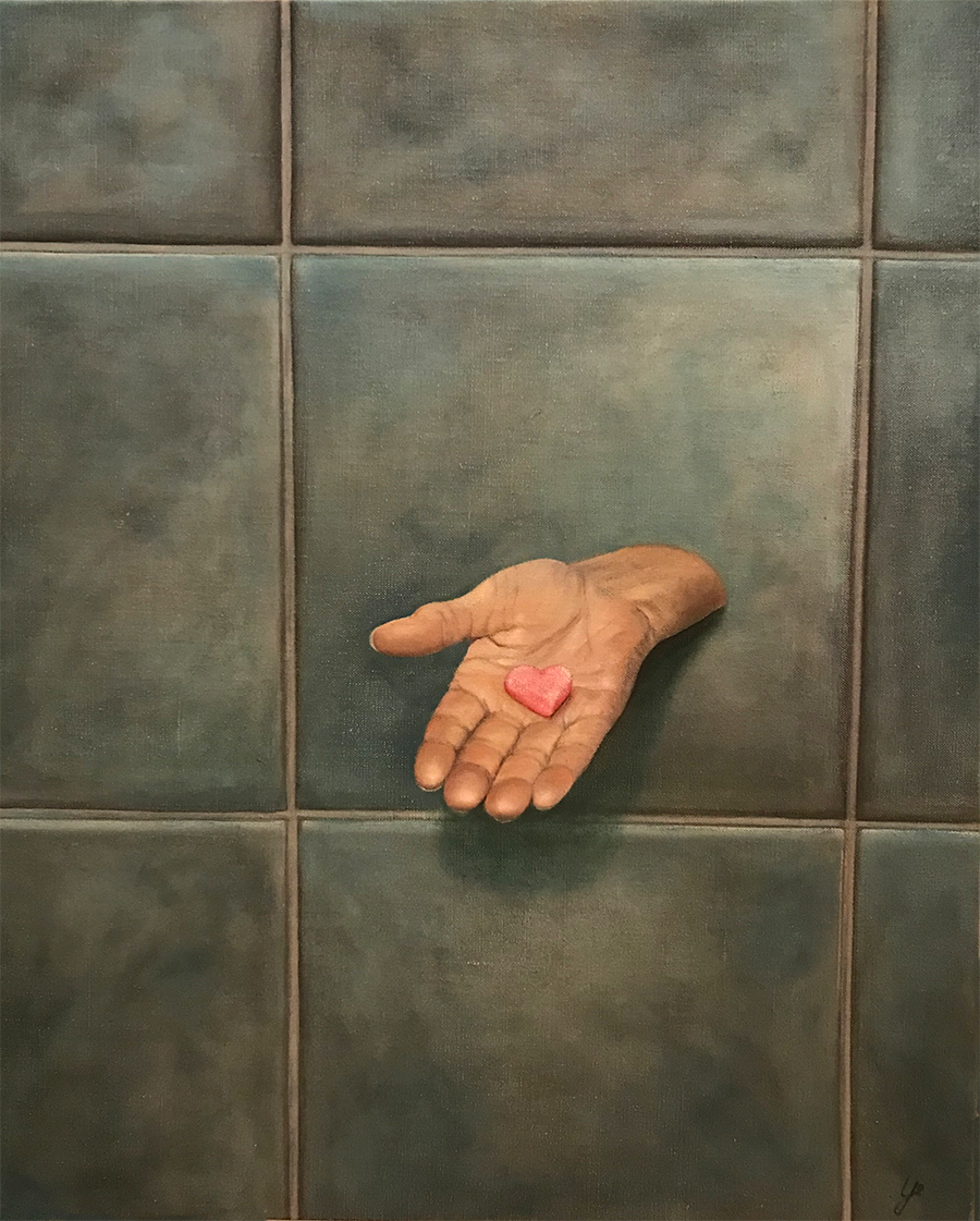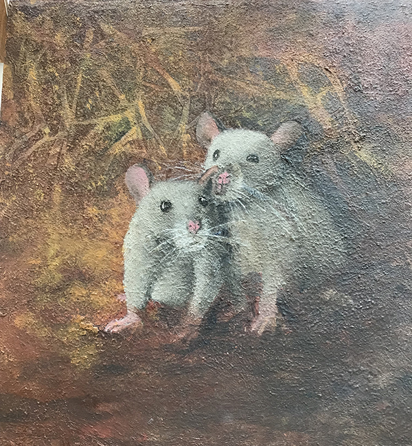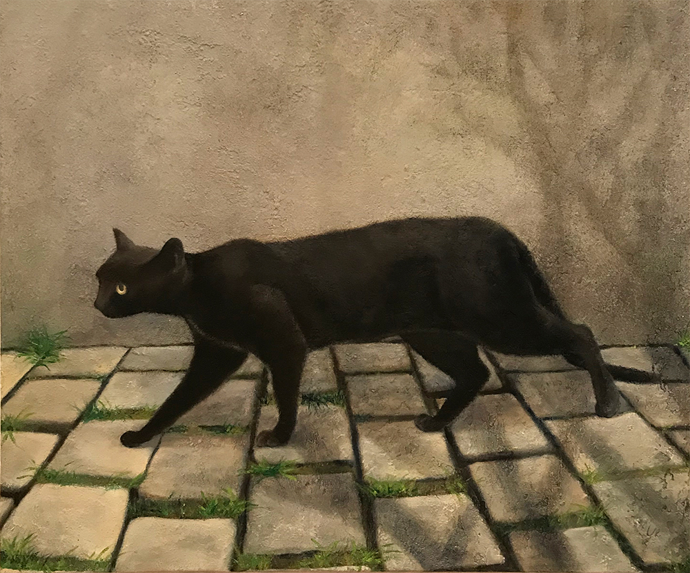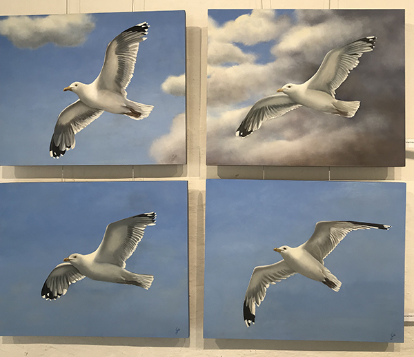 Genom att använda oljefärg har jag möjlighet att ”känna” mig fram i målningen. Färgen torkar inte så fort och tillåter en hel del ändringar. Oljan i sig känns mycket levande, det är alltid spännande att kunna experimentera sig fram till det färdiga resultatet.
